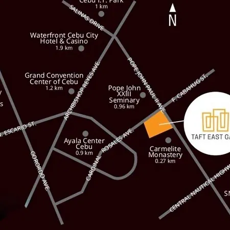 På grund af placeringen i Cebu Business Park område er det nemt at nå landemærker som IEC Convention Center Cebu. Du kan få adgang til Fully Booked på 7 minutter til fods. 5 minutters gåtur tager gæsterne til café Yolk Coffee and Breakfast. Denne ferielejlighed har nærhed til Karmelitkloster.